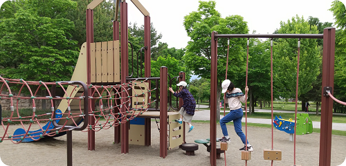 近くの公園で遊んだり、広い厨房で料理もできます。